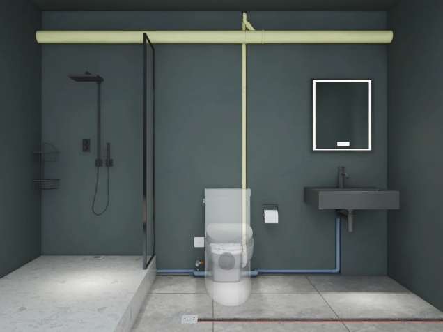 VBORO威博朗一体式电动坐便器能很好解决此类问题。安装无需坑位/下水,不受场景限制,仅需要一根32mm的PVC管道就可以将水向上提升,排至同层排污总管。