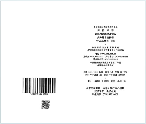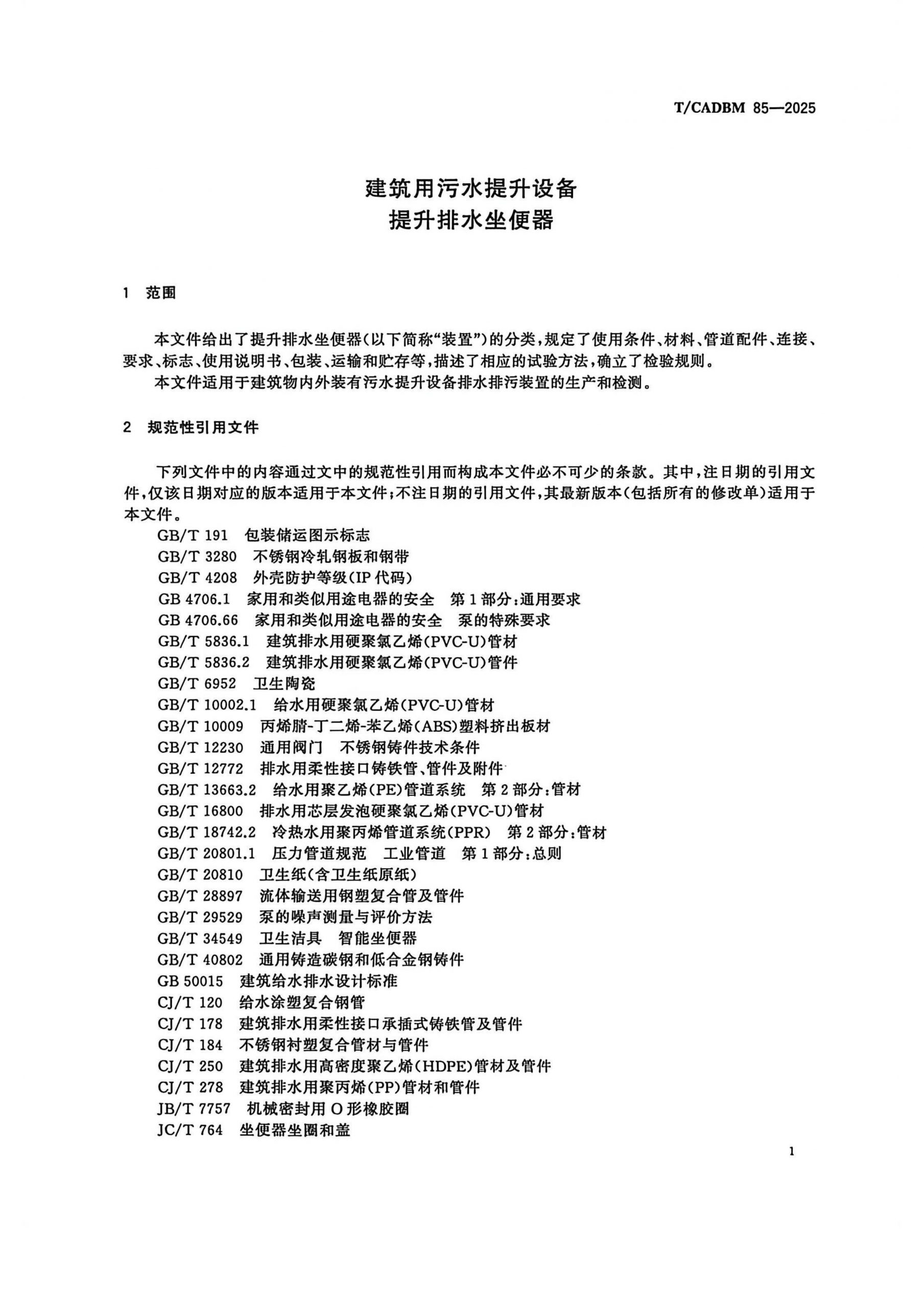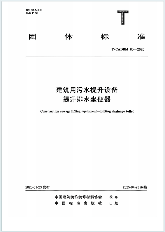 由中国建筑装饰装修材料协会提出并归口,上海智康卫浴设备有限公司(以下简称“智康公司”)牵头起草的《建筑用污水提升设备——提升排水坐便器》(T/CADBM 85-2025)团体标准,经严格审核符合制定程序,已于2025年4月23日起在全国范围内正式实施!