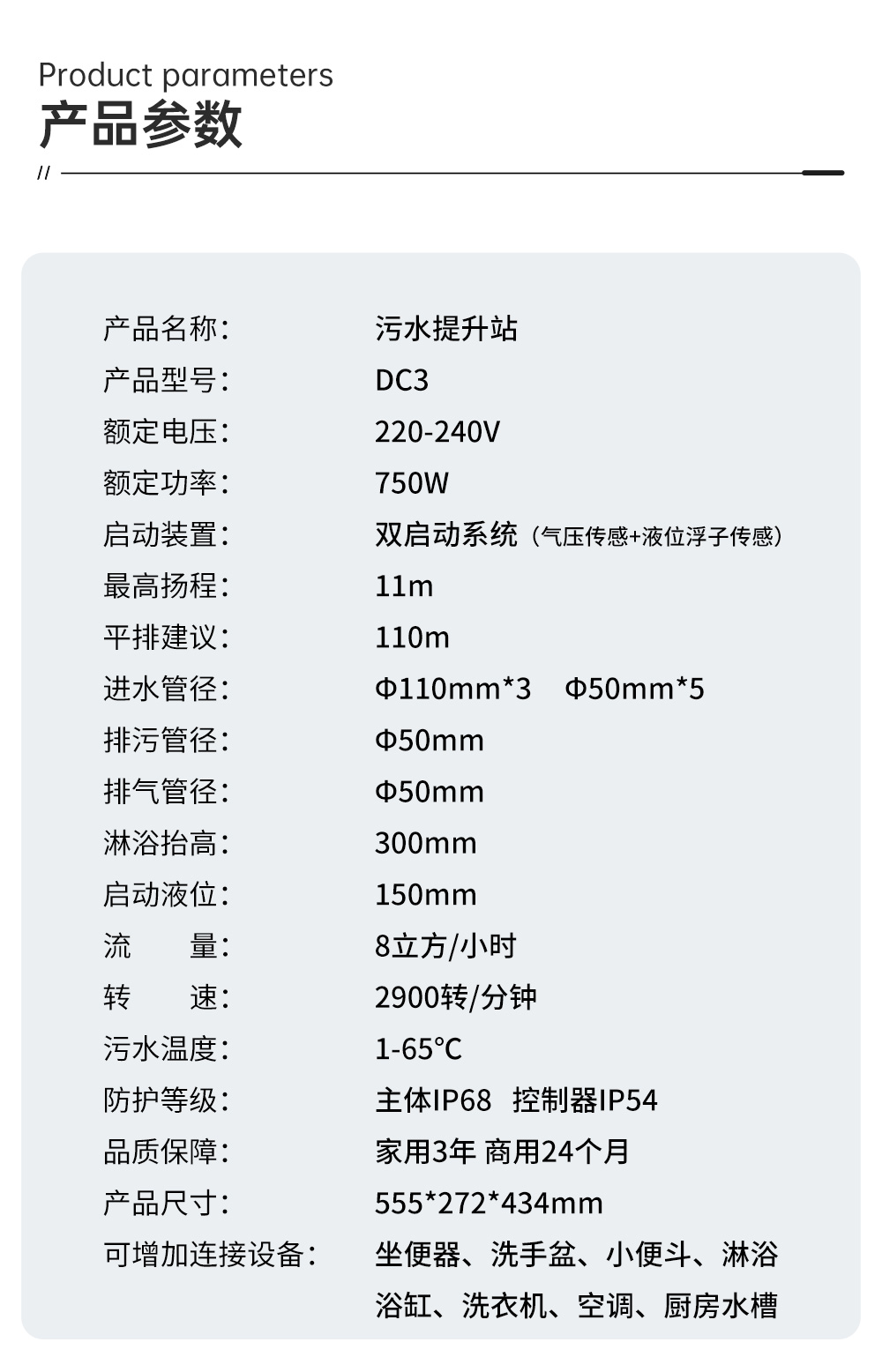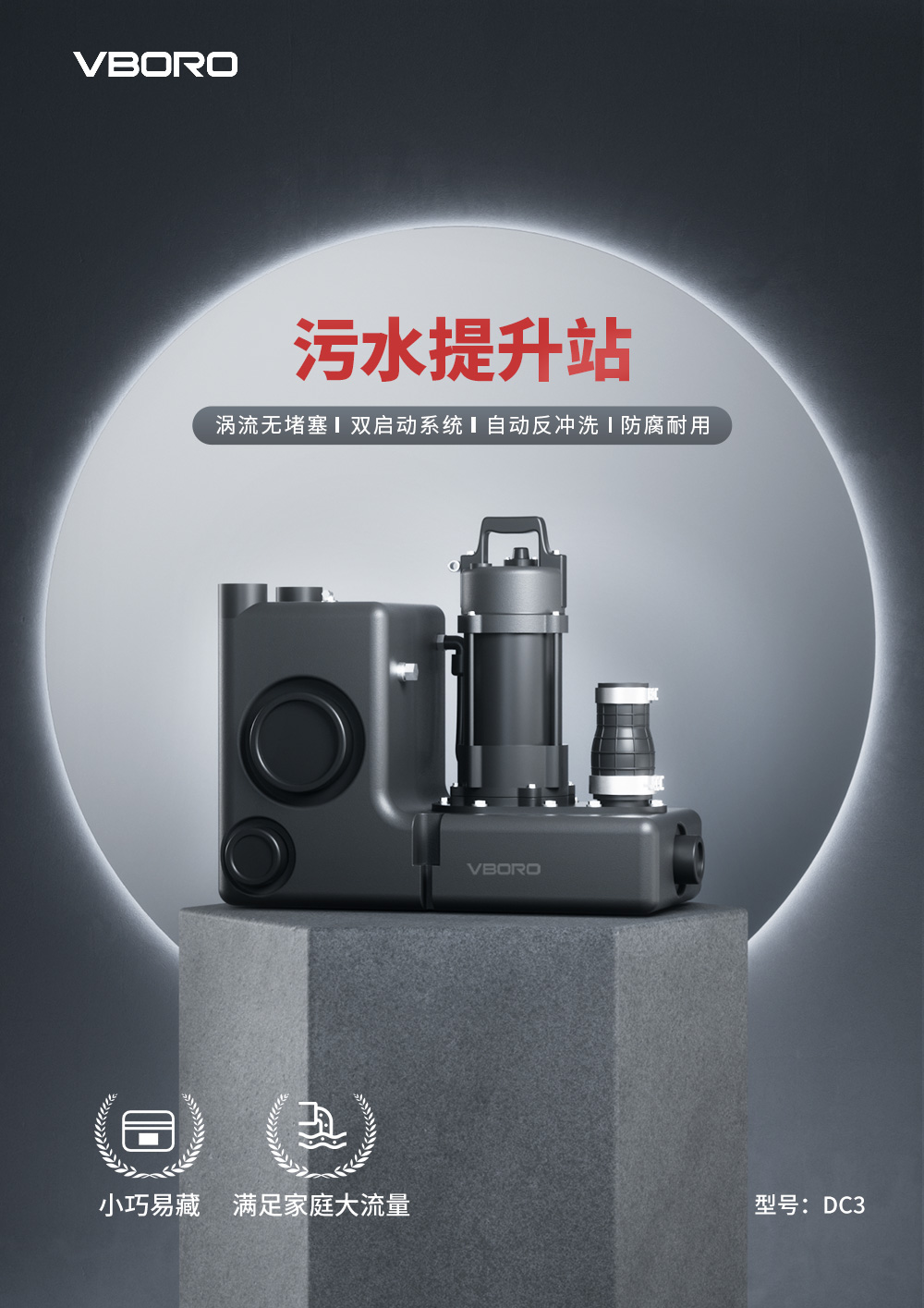 涡流无堵塞、双启动系统、自动反冲洗、防腐耐用 外观小巧易隐藏,满足大流量排污
