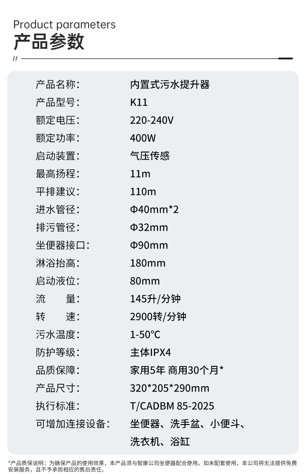 低能耗、高扬程、寿命长、360°强劲自洁 强劲铰刀、自动排污,适配提升排水坐便器