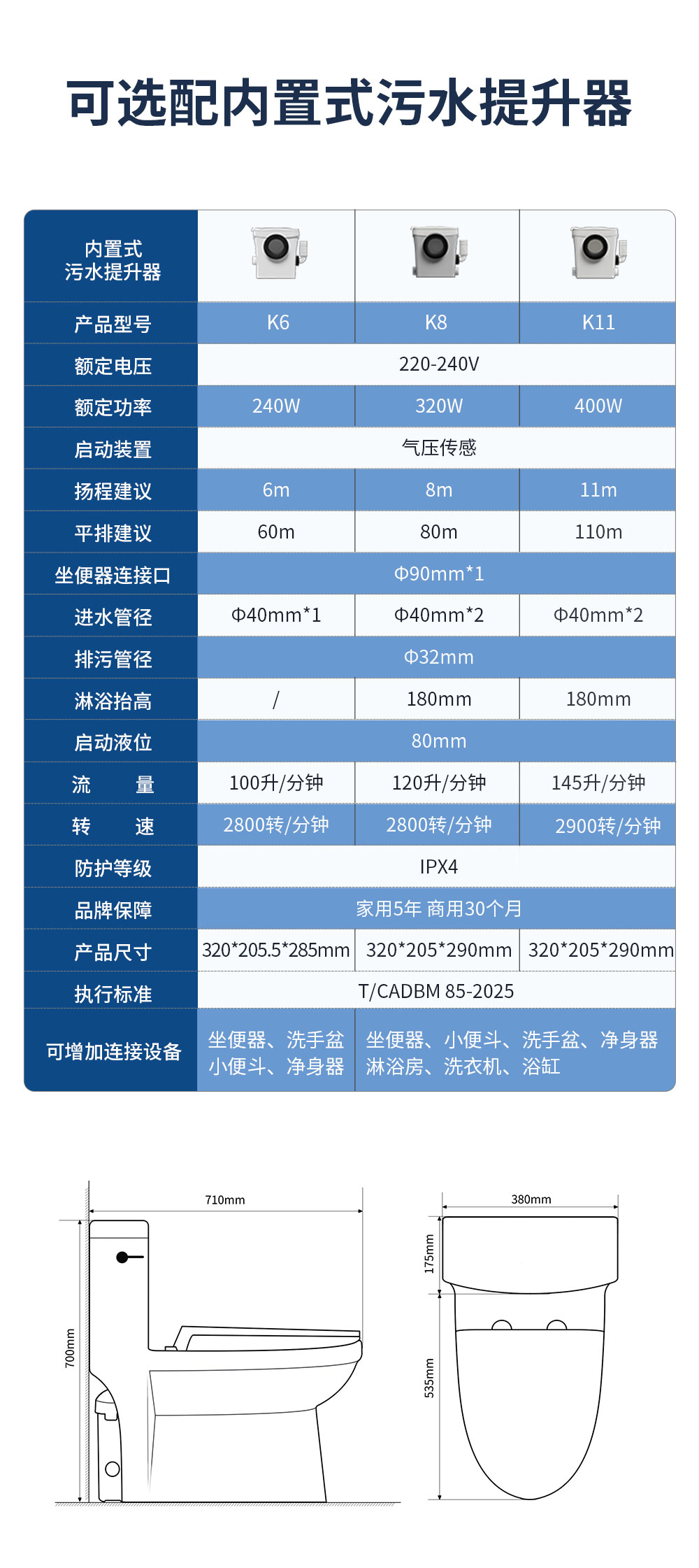 低调内敛,经典简约 适配K6、K8、K11内置污水提升器 一机解决各种场景排污需求