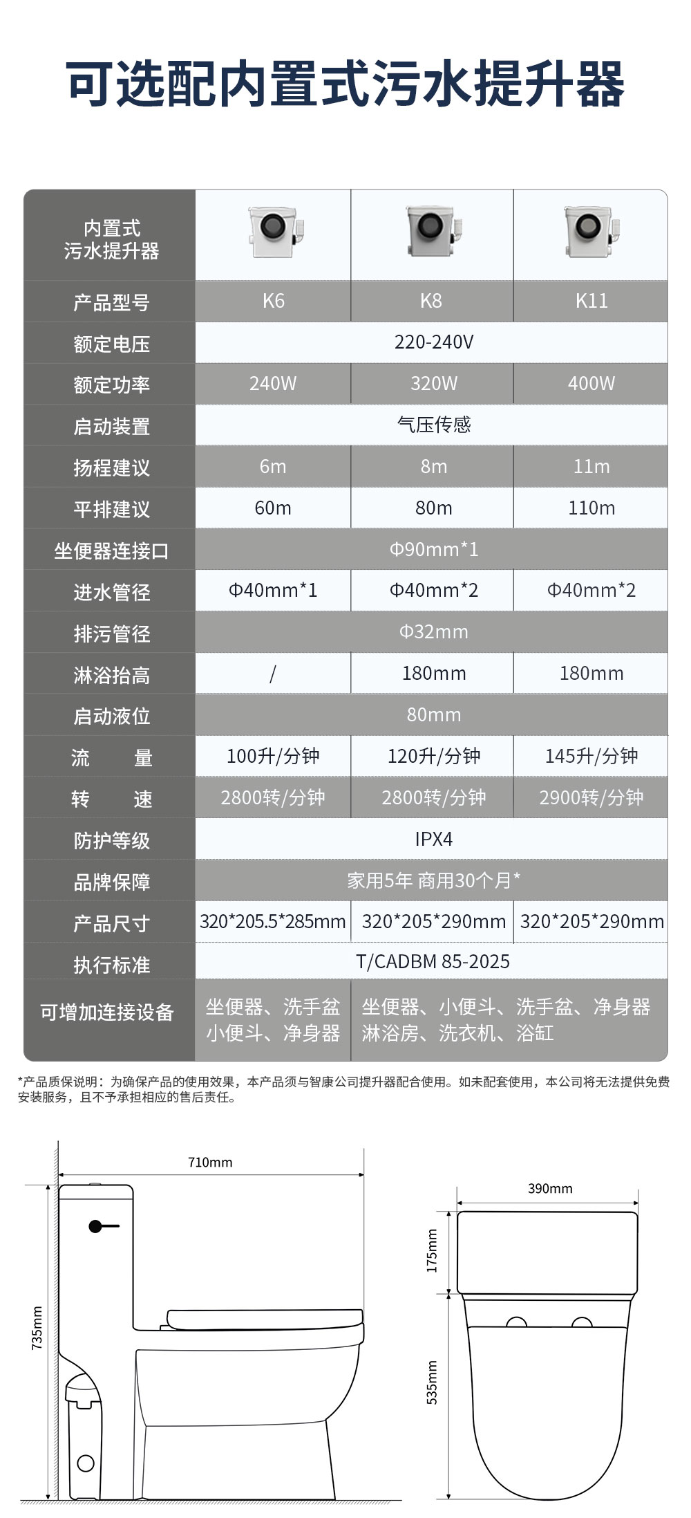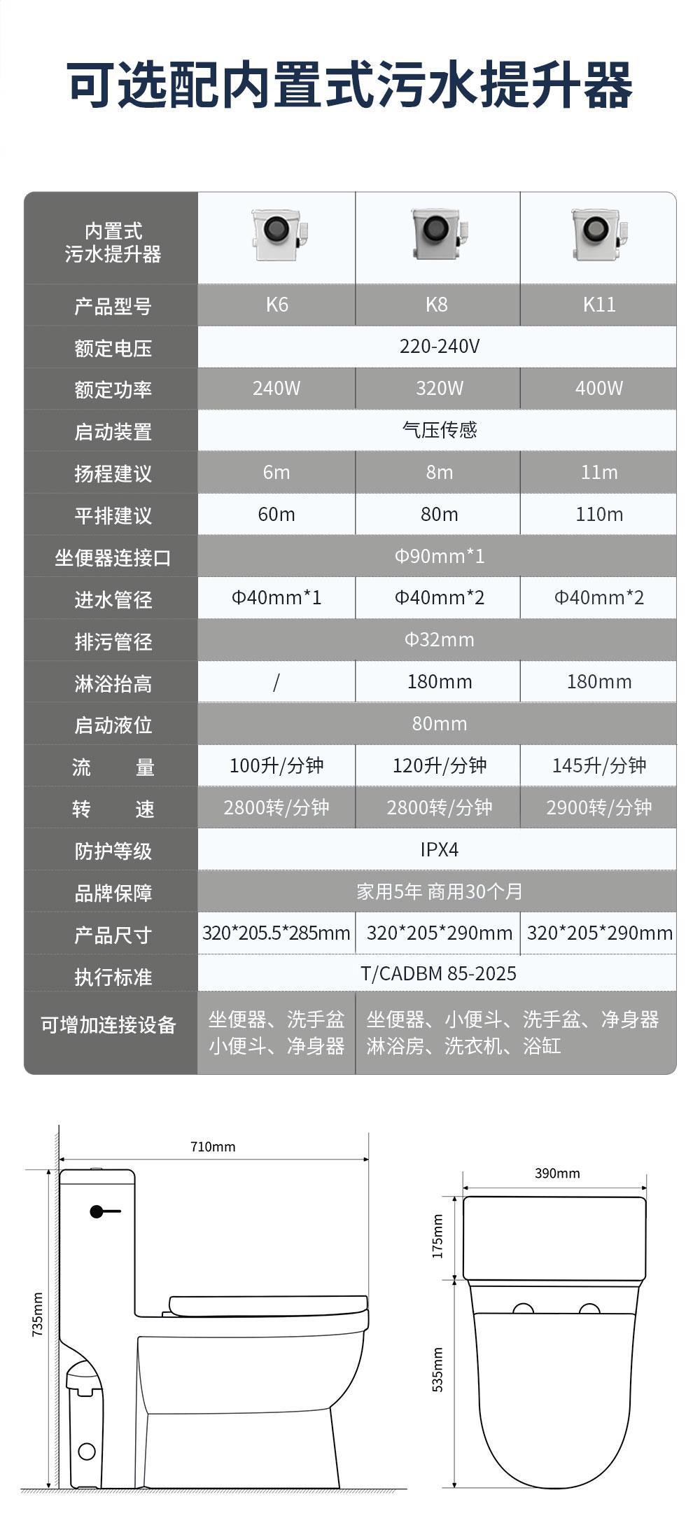 圆润敦厚,内敛而不失大气 适配K6、K8、K11内置污水提升器 一机解决各种场景排污需求