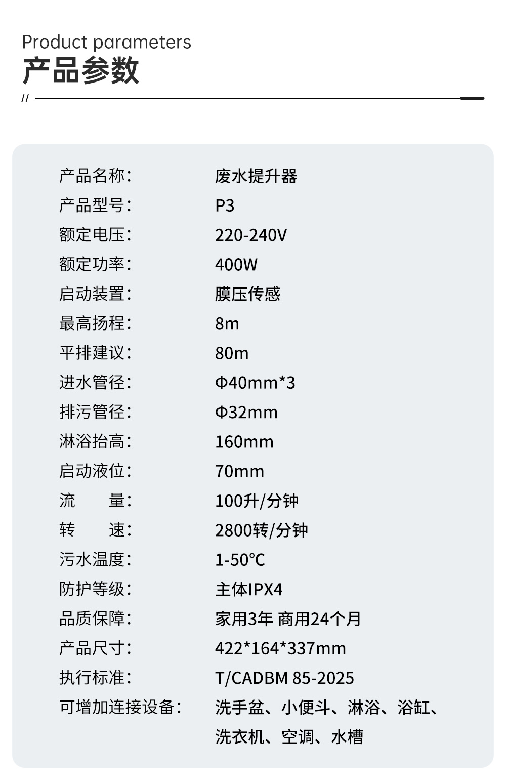 惠享品质、轻薄小巧、轻音运行、持久耐用,纯排废水 无需重装排污系统,随意增建厨卫空间